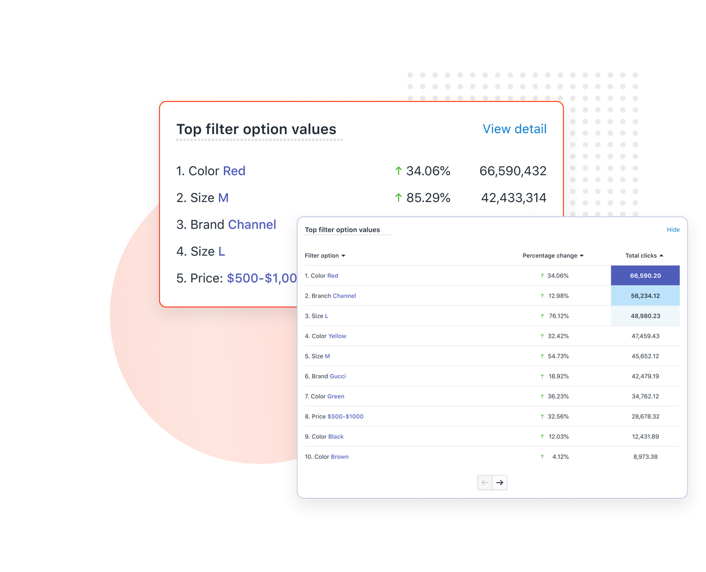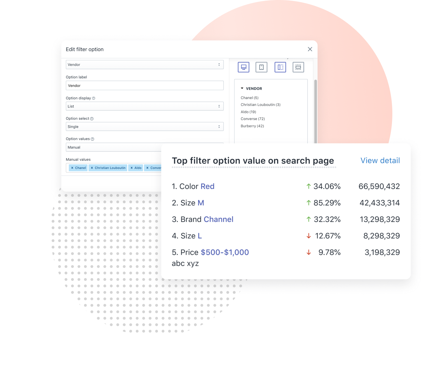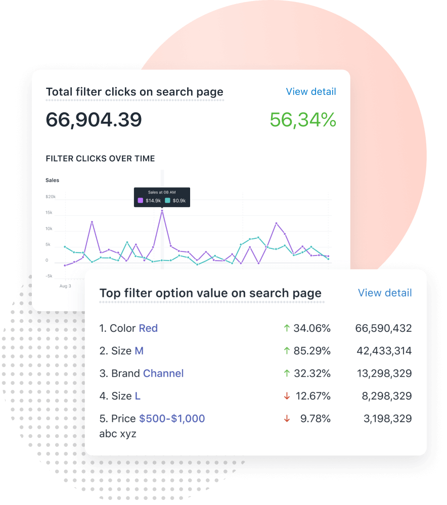 Data-driven insights about your customers' shopping behaviors through important site search analytics and reports for collection filter activities.