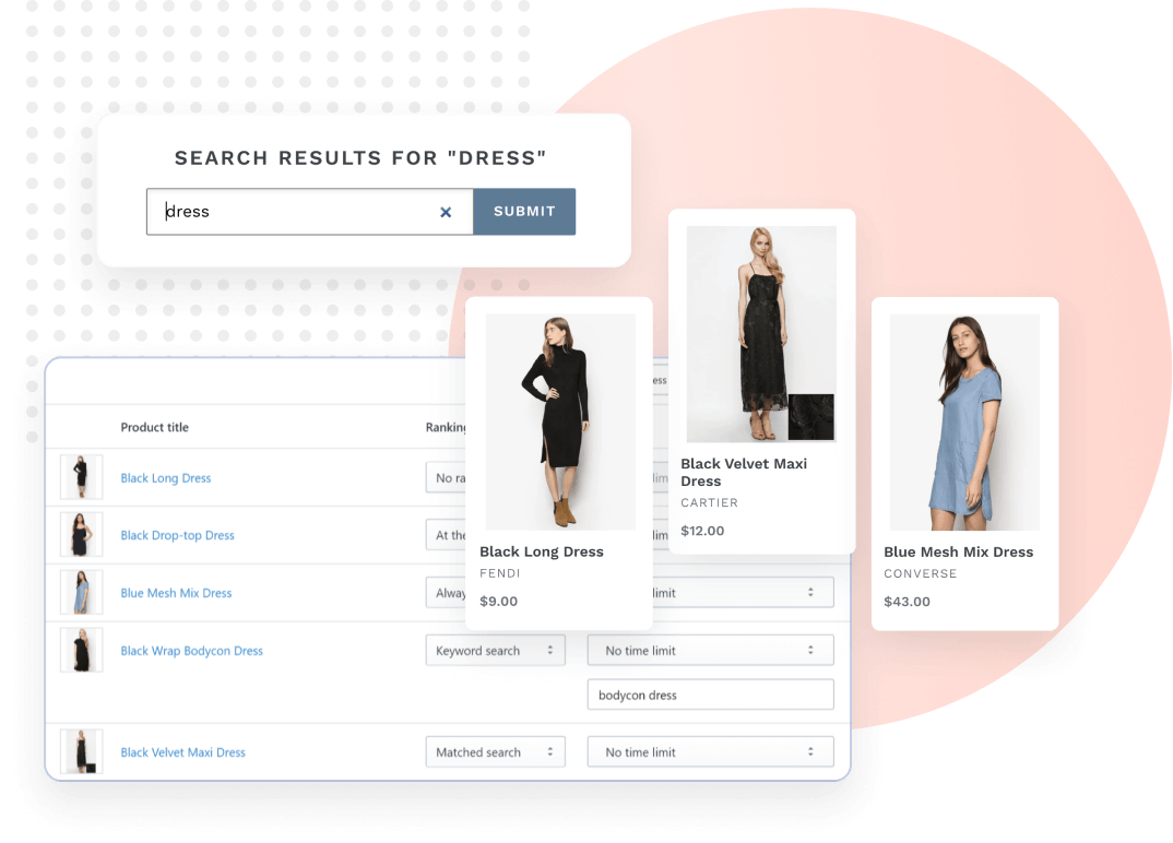 For example, by default, when customers search for Hat, the product Blue Hat will be shown first and Red Hat will be shown last. However, if you want to show Red Hat first, simply change the ranking of Red Hat and Blue Hat.