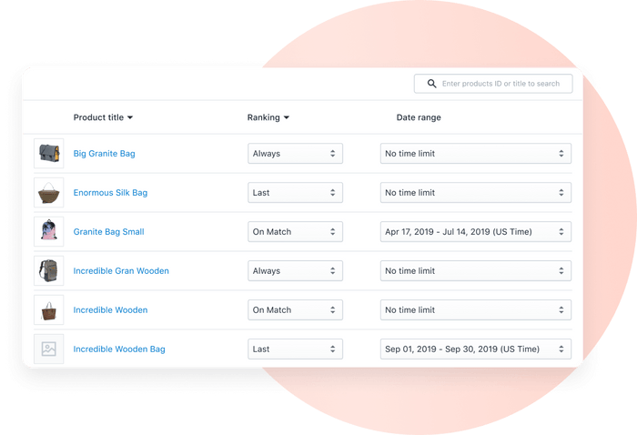 Boost allows you to select the date range for a single product ranking rule so that you can adjust it to your marketing plan. -