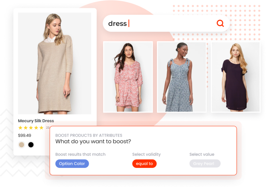 Site searchers on Orka convert 6x better than visitors without product search thanks to advanced features such as Autocomplete, Redirect, Rule-based Merchandising, Suggestion Dictionary, etc.
